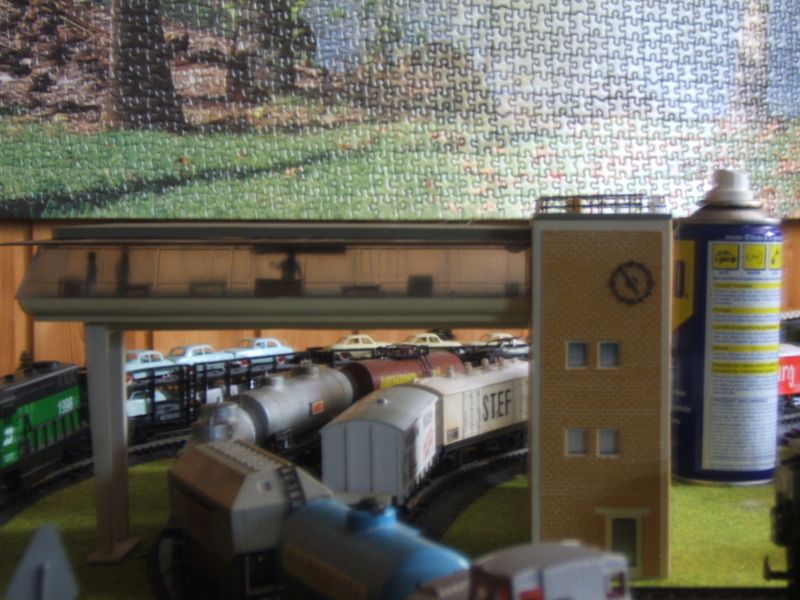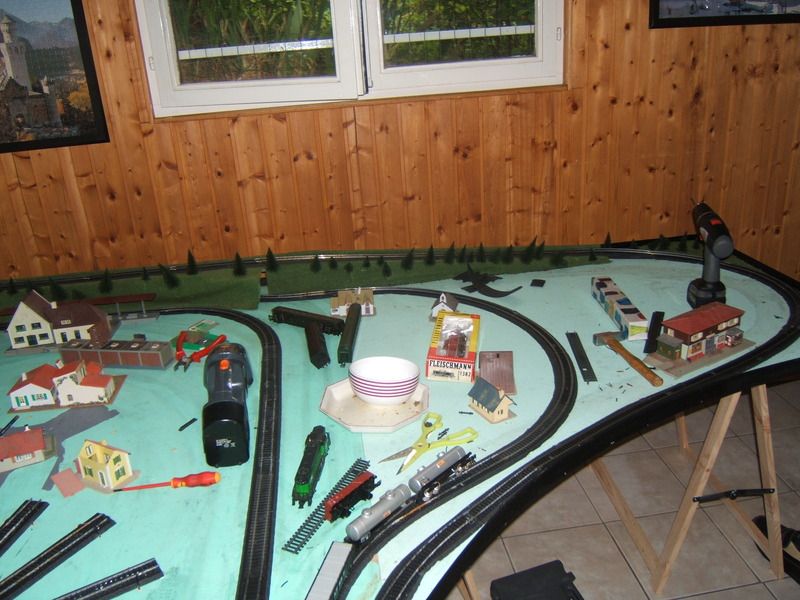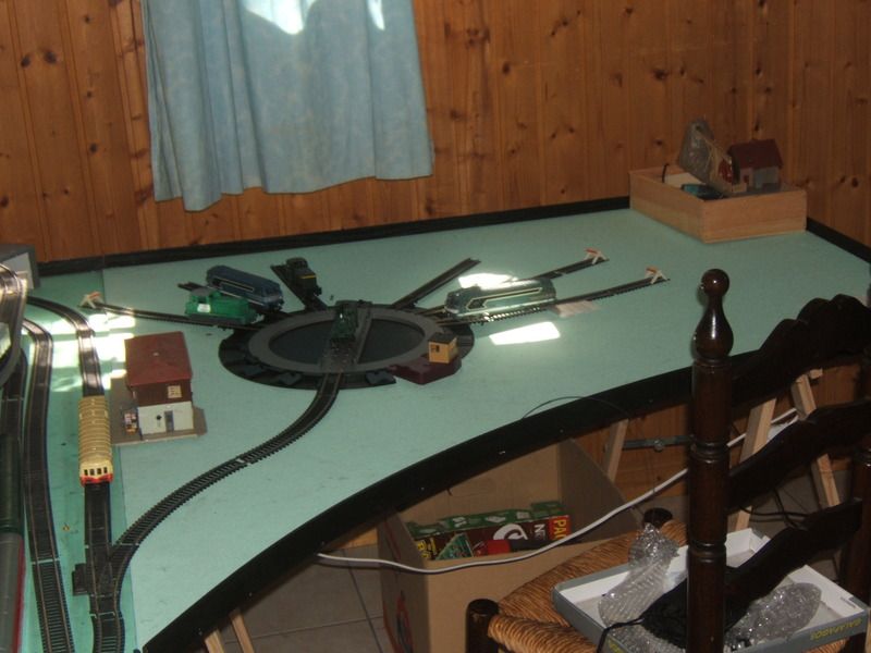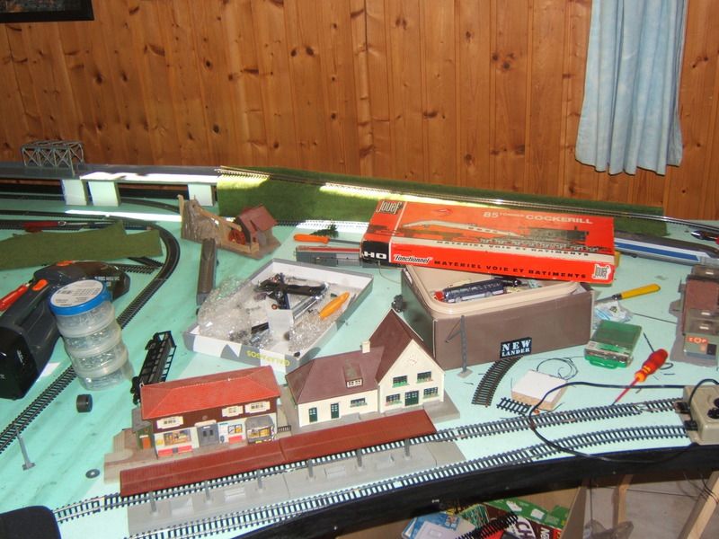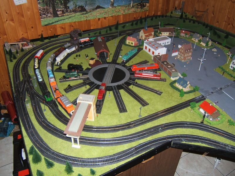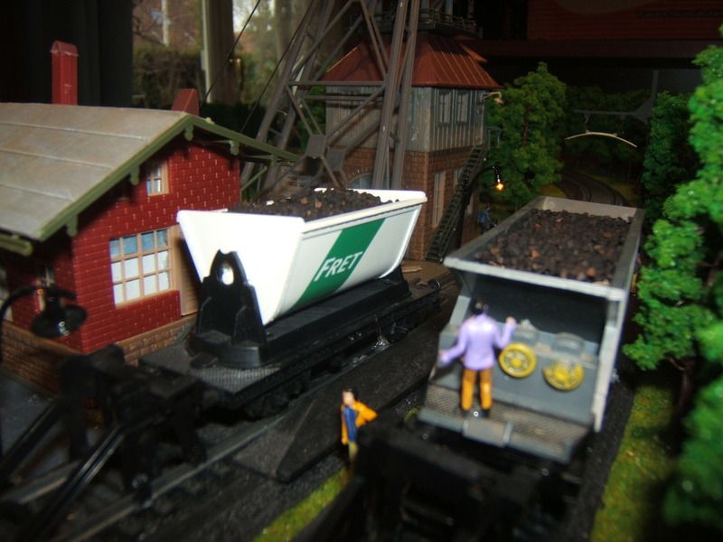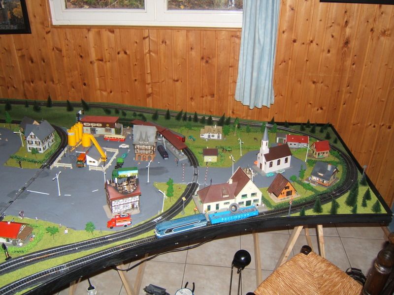 J'ai commencé mon module d'exposition donc j'ai créé une nouvelle rubrique A-mon diorama d'exposition.Le diorama mesure 87X103cm ,le train part de la mine monte en contournant le village ou il y à un tracteur avec le gyrophare qui fonvctionne,il y à aussi le moulin qui tourne et encore d'autre chose arrive en haut et s'arrête à l'usine puis ou bout de 1 minute il redéscent à la mine.